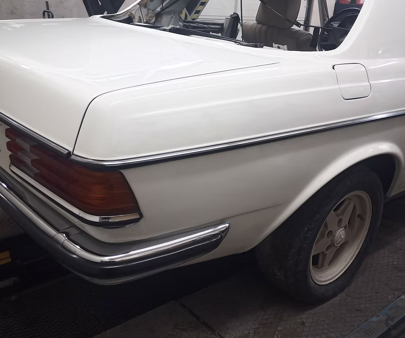 Ein echter Klassiker wieder auf der Straße: Wir haben Karosserie, Innenraum und Technik eines Mercedes W123 liebevoll überarbeitet – im Originalfarbton und mit originalgetreuen Ersatzteilen.